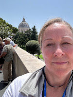 To hotel to change for the afternoon touring to Vatican, Museums, and St. Peter’s Basilica. The temperature reached 106° today. It was unbelievably hot! I stayed cool with a cooling towel around neck that I re-wet every chance I could. The awe and beauty surrounding me kept my mind off the temp. We split into two groups. Anna asked which group I wanted to be in chose the smaller group of 11. Our tour guide was Irené. She was amazing and so fun! It was nice to be in a smaller group. She is so knowledgable it’s amazing!